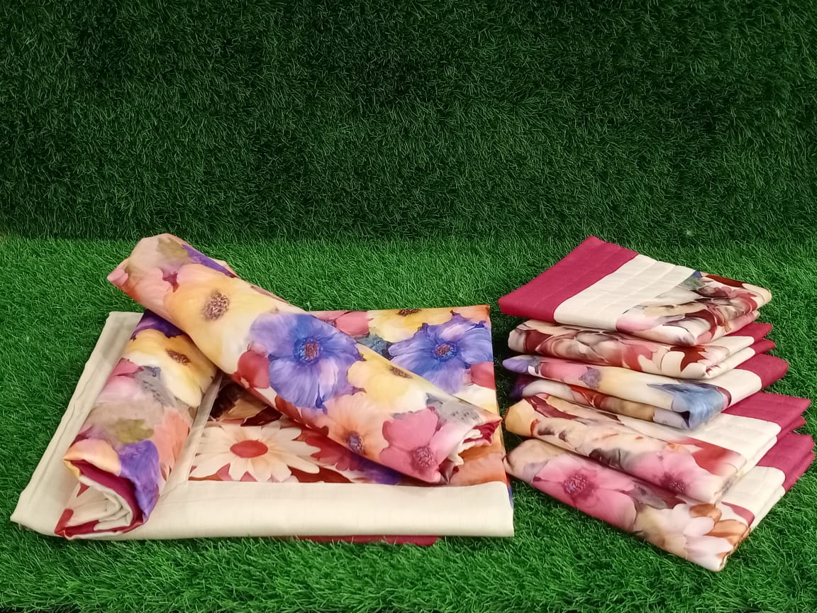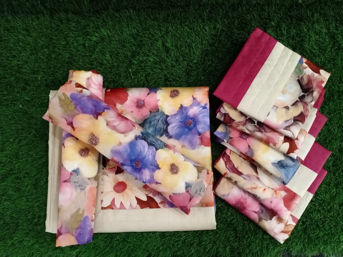 Set Contents : 1 Bedsheet, 2 Bolster Cover, 5 Cushion Covers
